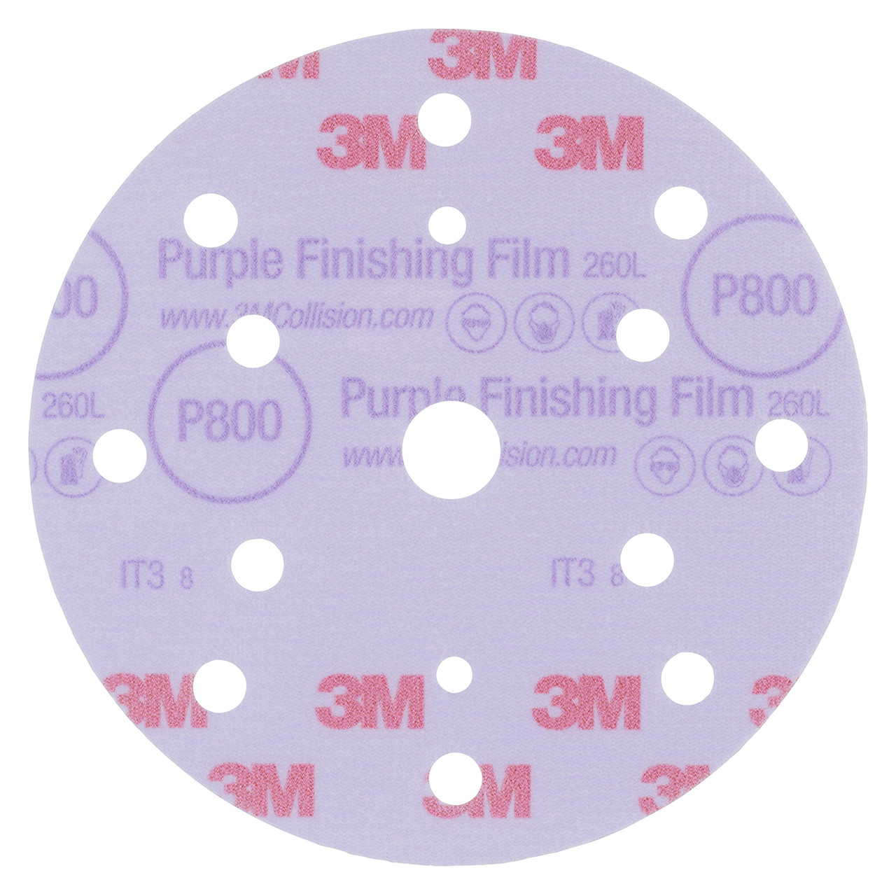 Our 3M Hookit Purple Finishing Film Abrasive Disc 260L features an updated coating that levels surface defects on clear coat and greatly reduces pigtails. Aluminium oxide abrasive cuts fast, lasts a long time, resists loading with or without hole pattern designs and leaves a consistent, easy-to-polish finish. Our 3M Hookit attachment system makes disc change-outs fast and easy.