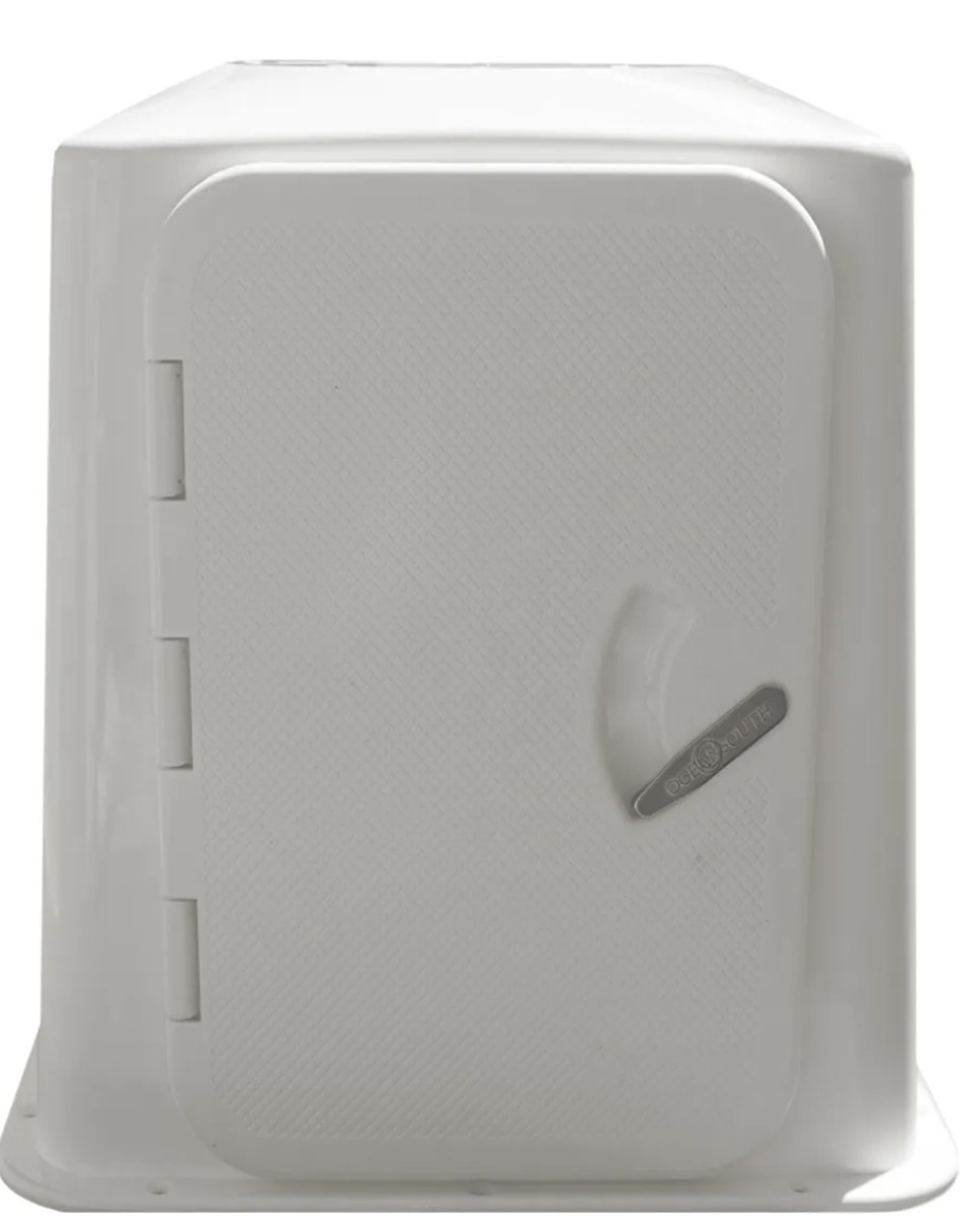 Beyond durability, these seat boxes provide genuine functionality on board. The integrated waterproof hatch and compartment offers a safe, dry place to stow fishing tackle, personal flotation devices (PFDs), tools, keys, phones and safety essentials, while the smooth, clean white finish and subtle taper give the boxes a sleek, professional appearance. Available in two heights to suit different deck layouts, they are designed for easy installation and compatibility with Oceansouth boat seats, as well as most other seating systems.