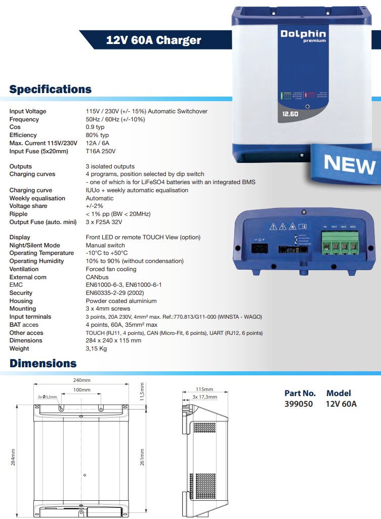 New Dolphin Premium 12v 60A includes CAN BUS J1939 feature