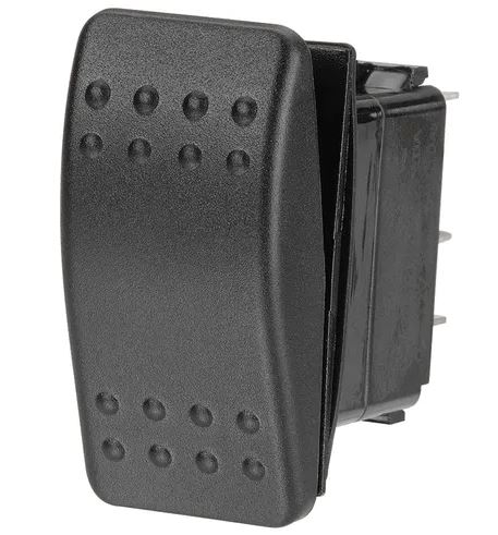 SPDT, push-fit design with push on terminals Amperage rating 20A at 12V, 10A at 24V Mounting opening: 37.5 x 21mm