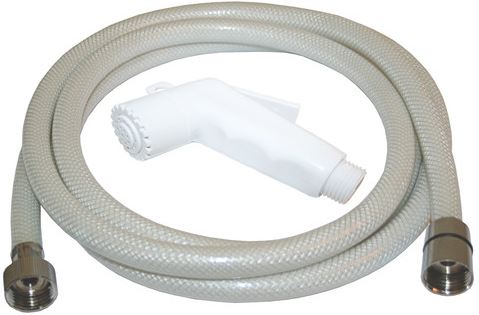 Complete shower with 5 Mtr hose Italian made white hand shower sets which are ideal as a transom shower unit. The moulded plastic shower head has a lever action on / off switch and a moulded eye to hang it up. The set comes complete with either a 3 Mtr or 5 Mtr reinforced PVC hose that has 1/2″ female chrome connection fi tting on the shower head end & 3/8″ female chrome connection on the water supply end. Suits all Nuova Rade & Plastimo deck showers.