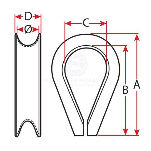 A galvanised thimble is a corrosion-resistant metal insert used to reinforce the eye of a rope or wire on boats and marine equipment. Its galvanised coating protects against saltwater exposure, while its curved, rigid shape prevents chafing and helps the rope maintain a strong, secure loop. Commonly used in mooring, anchoring, and lifting applications, it improves durability and reliability in harsh marine conditions.